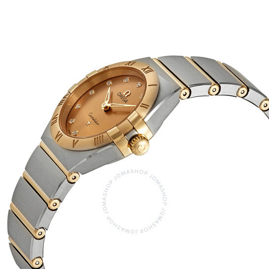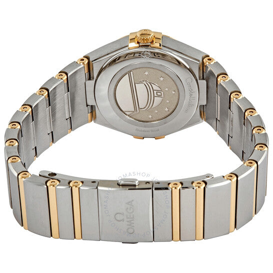 علبة من الفولاذ المقاوم للصدأ مع سوار من الفولاذ المقاوم للصدأ بقضبان من الذهب الأصفر عيار 18 قيراطًا. إطار ثابت من الذهب الأصفر عيار 18 قيراطًا. ميناء من الذهب الأصفر بعقارب ذهبية اللون وعلامات ساعات من الألماس. نوع الميناء: تناظري. حركة كوارتز أوميغا عيار 4061. زجاج ياقوت مقاوم للخدش. تاج قابل للسحب/الدفع. غطاء خلفي صلب. شكل دائري. حجم العلبة: 28 مم. عرض السوار: 17.5 مم. مشبك قابل للطي بزر ضغط. مقاومة للماء حتى عمق 30 مترًا / 100 قدم. الوظائف: الساعات، الدقائق. سلسلة كونستليشن مانهاتن. تصميم ساعة فاخرة. علامة الساعة: صناعة سويسرية. ساعة أوميغا كونستليشن مانهاتن كوارتز نسائية مرصعة بالألماس 131.20.28.60.58.001.