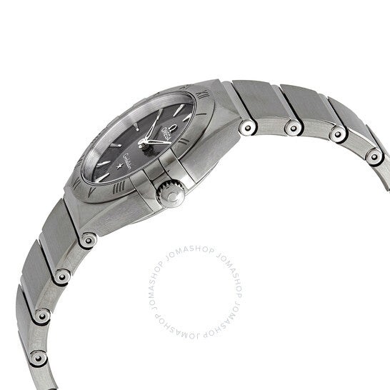علبة من الفولاذ المقاوم للصدأ مع سوار من الفولاذ المقاوم للصدأ. إطار ثابت من الفولاذ المقاوم للصدأ. ميناء رمادي مع عقارب من الذهب الأبيض عيار 18 قيراطًا وعلامات ساعات من الذهب الأبيض عيار 18 قيراطًا. نوع الميناء: تناظري. حركة كوارتز أوميغا عيار 4061. زجاج ياقوت مقاوم للخدش. تاج قابل للسحب/الدفع. غطاء خلفي صلب. شكل دائري. حجم العلبة: 28 مم. عرض السوار: 17.5 مم. مشبك قابل للطي بزر ضغط. مقاومة للماء حتى عمق 30 مترًا / 100 قدم. الوظائف: الساعات، الدقائق. تصميم ساعة فاخرة. علامة الساعة: صناعة سويسرية. ساعة أوميغا كونستليشن مانهاتن كوارتز نسائية بمينا رمادي، 131.10.28.60.06.001.