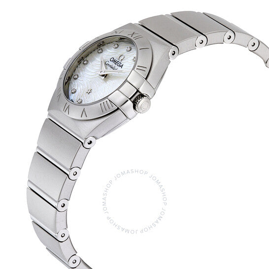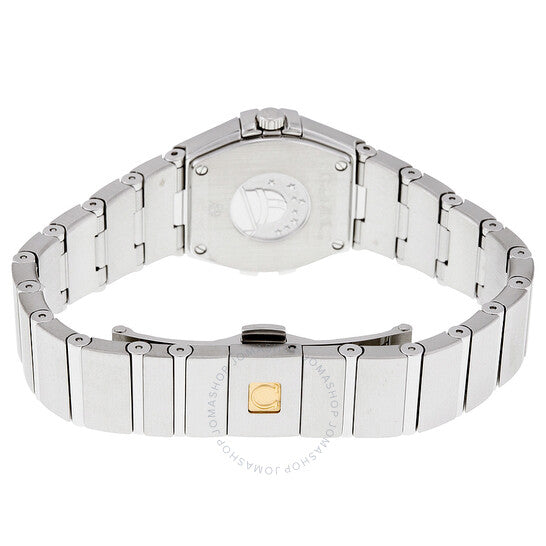 علبة من الفولاذ المقاوم للصدأ مع سوار فضي اللون. إطار ثابت من الفولاذ المقاوم للصدأ. ميناء من عرق اللؤلؤ مع عقارب فضية مضيئة وعلامات ساعات من الألماس. نوع الميناء: تناظري. عقارب مضيئة. أوميغا كاليبر 1376 كوارتز. كريستال ياقوت مقاوم للخدش. غطاء خلفي صلب. حجم العلبة: 24 مم. سمكها: 9 مم. شكلها دائري. عرض السوار: 15 مم. مشبك قابل للطي بزر ضغط. مقاومة للماء حتى عمق 100 متر / 330 قدمًا. الوظائف: الساعات والدقائق. معلومات إضافية: مناسبة بشكل عام للسباحة والغطس، ولكنها ليست مناسبة للغوص. تصميم ساعة فاخر. علامة الساعة: صناعة سويسرية. رقم المنتج: 12310246055004. ساعة أوميغا كونستليشن نسائية بمينا من عرق اللؤلؤ، 123.10.24.60.55.004.