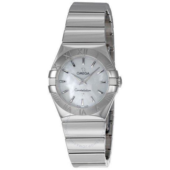 علبة من الفولاذ المقاوم للصدأ مع سوار من الفولاذ المقاوم للصدأ. إطار ثابت من الفولاذ المقاوم للصدأ. ميناء من عرق اللؤلؤ مع عقارب فضية اللون وعلامات ساعات. نوع الميناء: تناظري. حركة كوارتز. محرك عيار 1376. كريستال ياقوتي مقاوم للخدش. غطاء خلفي صلب. قطر العلبة: 27 مم. سمكها: 9 مم. شكلها دائري. عرض السوار: 15 مم. طول السوار: 6 بوصات. مشبك مخفي بزر ضغط مزدوج. مقاومة للماء حتى عمق 30 مترًا / 100 قدم. الوظائف: الساعات، الدقائق. طراز ساعة رسمية. علامة الساعة: صناعة سويسرية. اختلافات المنتج: 123 10 27 60 05 002، 123-10-27-60-05-002، 123/10/27/60/05/002، 12310276005002. ساعة أوميجا كونستليشن للسيدات من الفولاذ بمينا من عرق اللؤلؤ 123.10.27.60.05.002.
