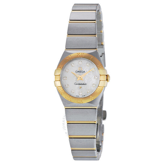 علبة من الفولاذ المقاوم للصدأ مع سوار من الفولاذ المقاوم للصدأ بقضبان من الذهب الأصفر. إطار ثابت من الذهب الأصفر. ميناء أبيض من عرق اللؤلؤ مع عقارب مضيئة من الذهب الأصفر وعلامات ساعات من الألماس. نوع الميناء: تناظري. عقارب مضيئة. حركة كوارتز أوميغا عيار 1376. زجاج ياقوت مقاوم للخدش. تاج قابل للسحب/الدفع. غطاء خلفي صلب. حجم العلبة: 24 مم. سمكها: 7.5 مم. شكلها دائري. عرض السوار: 15 مم. مشبك قابل للطي مع مفتاح أمان. مقاومة للماء حتى عمق 100 متر / 330 قدمًا. الوظائف: الساعات، الدقائق. تصميم ساعة فاخرة. علامة الساعة: صناعة سويسرية. اختلافات المنتج: 123 20 24 60 55 002، 123-20-24-60-55-002، 123/20/24/60/55/002، 12320246055002. ساعة أوميجا كونستليشن للسيدات بمينا من عرق اللؤلؤ 123.20.24.60.55.002.