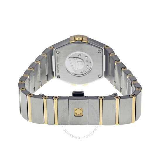 علبة من الفولاذ المقاوم للصدأ مع سوار من الفولاذ المقاوم للصدأ بقضبان من الذهب الأصفر عيار 18 قيراطًا. إطار ثابت من الذهب الأصفر عيار 18 قيراطًا مع علامات ساعات رومانية محفورة. ميناء من عرق اللؤلؤ مع عقارب ذهبية مضيئة وعلامات ساعات من الماس. نوع الميناء: تناظري. حركة كوارتز. زجاج ياقوت مقاوم للخدش. تاج قابل للسحب/الدفع. قطر العلبة: 27 مم. سمكها: 9 مم. شكلها دائري. عرض السوار: 21 مم. مشبك قابل للطي بزر ضغط. مقاومة للماء حتى عمق 100 متر / 330 قدمًا. الوظائف: الساعات، الدقائق. طراز ساعة فاخرة. علامة الساعة: صناعة سويسرية. ساعة أوميغا كونستليشن دايموند نسائية، مينا من عرق اللؤلؤ، مصنوعة من الذهب الأصفر والفولاذ المقاوم للصدأ، رقمها 123.20.27.60.55.002.