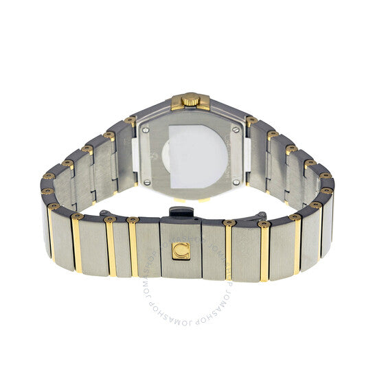 علبة من الفولاذ المقاوم للصدأ مع سوار من الفولاذ المقاوم للصدأ بقضبان من الذهب الأصفر عيار 18 قيراطًا. إطار ثابت من الذهب الأصفر عيار 18 قيراطًا مرصع بـ 28 ماسة. ميناء أبيض من عرق اللؤلؤ مع عقارب ذهبية مضيئة وعلامات ساعات من الألماس. نوع الميناء: تناظري. عقارب مضيئة. حركة كوارتز. كريستال ياقوت مقاوم للخدش. غطاء خلفي صلب. قطر العلبة: 27 مم. سمكها: 9 مم. شكلها دائري. عرض السوار: 15 مم. مشبك قابل للطي. مقاومة للماء حتى عمق 100 متر / 330 قدمًا. الوظائف: الساعات، الدقائق. طراز ساعة رسمية. علامة الساعة: صناعة سويسرية. ساعة أوميغا كونستليشن نسائية بمينا من عرق اللؤلؤ 123.25.27.60.55.003.