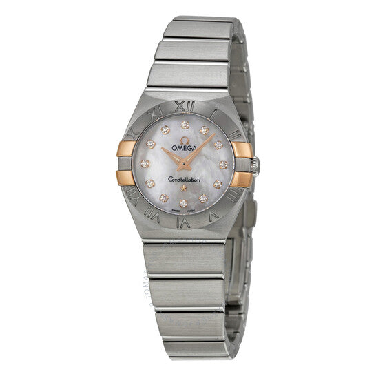 علبة من الفولاذ المقاوم للصدأ مع سوار من الفولاذ المقاوم للصدأ. إطار ثابت من الفولاذ المقاوم للصدأ بمخالب من الذهب الوردي عيار 18 قيراطًا. ميناء من عرق اللؤلؤ مع عقارب من الذهب الوردي وعلامات ساعات من الألماس. نوع الميناء: تناظري. حركة كوارتز. كريستال ياقوت مقبب مضاد للانعكاس ومقاوم للخدش. تاج قابل للسحب/الدفع. غطاء خلفي صلب. قطر العلبة: 24 مم. شكل دائري. مشبك قابل للطي. مقاومة للماء حتى عمق 100 متر / 330 قدمًا. الوظائف: الساعات، الدقائق. طراز ساعة رسمية. علامة الساعة: صناعة سويسرية. ساعة أوميغا كونستليشن نسائية من الفولاذ المقاوم للصدأ بمينا من عرق اللؤلؤ 12320246055005.