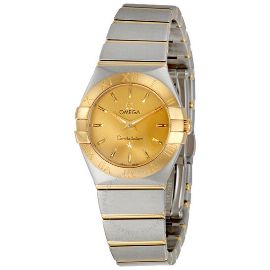 علبة من الفولاذ المقاوم للصدأ فضية اللون، مع سوار من الفولاذ المقاوم للصدأ فضي اللون، وإطار من الذهب الأصفر عيار 18 قيراطًا. ميناء بلون الشمبانيا مع عقارب مضيئة ومؤشرات ساعات من الذهب الأصفر. نوع الميناء: تناظري. عقارب ومؤشرات مضيئة. حركة كوارتز أوميغا كاليبر 1376 مع احتياطي طاقة يصل إلى 48 شهرًا. زجاج من الياقوت المقاوم للخدش. تاج قابل للسحب/الدفع. غطاء خلفي صلب. شكل دائري، مقاس العلبة: 24 مم، سمكها: 8.2 مم. عرض السوار: 14 مم، طوله: 7.5 بوصة. قابلة للطي مع مشبك بزر ضغط. مقاومة للماء حتى عمق 100 متر / 330 قدمًا. الوظائف: الساعات، الدقائق. تصميم كاجوال. علامة الساعة: صناعة سويسرية. اختلافات المنتج: 123 20 24 60 08 001، 123-20-24-60-08-001، 123/20/24/60/08/001، 12320246008001. ساعة أوميجا كونستليشن كوارتز بمينا شامبانيا للسيدات 123.20.24.60.08.001.