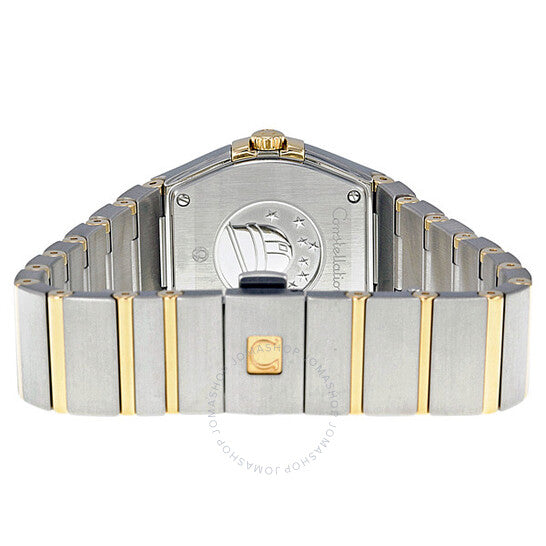 علبة من الفولاذ المقاوم للصدأ فضية اللون، مع سوار من الفولاذ المقاوم للصدأ فضي اللون وسوار من الذهب الأصفر. إطار ثابت من الذهب الأصفر. ميناء فضي مع عقارب مضيئة ذهبية اللون وعلامات ساعات. نوع الميناء: تناظري. عقارب وعلامات مضيئة. حركة كوارتز أوميغا كاليبر 1376 مع احتياطي طاقة لمدة 48 شهرًا. زجاج من الياقوت المقاوم للخدش. تاج قابل للسحب/الدفع. غطاء خلفي صلب. شكل دائري، مقاس العلبة: 27 مم، سمكها: 9 مم. عرض السوار: 17 مم، طوله: 7 بوصات. مشبك مخفي بزر ضغط مزدوج. مقاومة للماء حتى عمق 100 متر / 330 قدمًا. الوظائف: الساعات، الدقائق. تصميم ساعة فاخرة. علامة الساعة: صناعة سويسرية. ساعة أوميغا كونستليشن كوارتز نسائية بمينا فضي، 123.20.27.60.02.002.