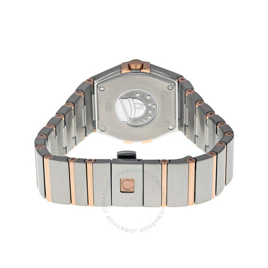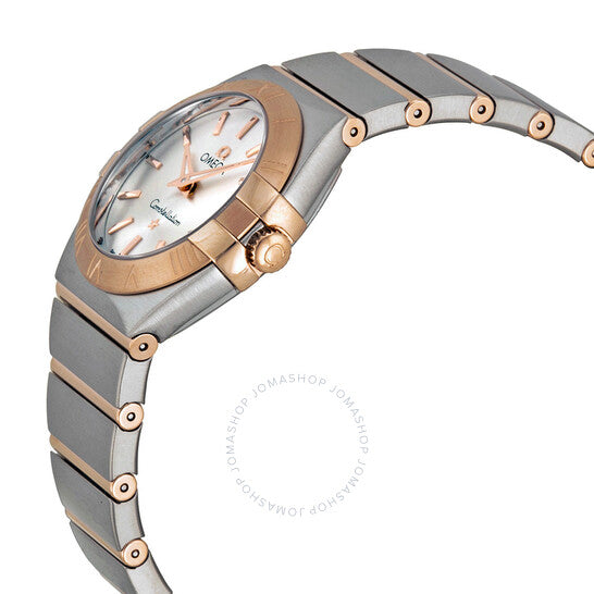 علبة من الفولاذ المقاوم للصدأ فضية اللون، مع سوار من الفولاذ المقاوم للصدأ ثنائي اللون (فضي وذهبي) من الذهب الوردي عيار 18 قيراطًا. إطار ثابت بأرقام رومانية من الذهب الوردي عيار 18 قيراطًا. ميناء فضي مع عقارب ومؤشرات ساعات على شكل دوفين من الذهب الوردي. نوع الميناء: تناظري. عقارب ومؤشرات مضيئة. حركة كوارتز أوميغا كاليبر 1376 مع احتياطي طاقة يصل إلى 48 شهرًا. زجاج من الياقوت المقاوم للخدش. تاج قابل للسحب/الدفع. غطاء خلفي صلب. شكل دائري، حجم العلبة: 27 مم، سمكها: 9 مم. عرض السوار: 15 مم. مشبك قابل للطي. مقاومة للماء حتى عمق 100 متر / 330 قدمًا. الوظائف: الساعة، الدقائق. سلسلة كونستليشن كوارتز المصقول. تصميم ساعة فاخرة. علامة الساعة: صناعة سويسرية. ساعة أوميغا كونستليشن كوارتز نسائية بمينا فضي ورقم 12320276002001.