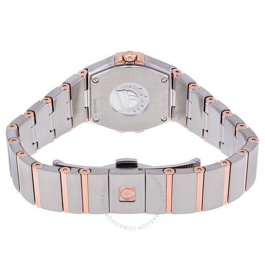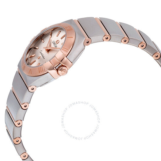 علبة من الفولاذ المقاوم للصدأ مع سوار من الفولاذ المقاوم للصدأ بقضبان من الذهب الوردي عيار 18 قيراطًا. إطار ثابت من الذهب الوردي عيار 18 قيراطًا. ميناء فضي مع عقارب مضيئة من الذهب الوردي وعلامات ساعات. نوع الميناء: تناظري. عقارب مضيئة. آلية حركة كوارتز. زجاج ياقوت مقاوم للخدش. تاج قابل للسحب/الدفع. غطاء خلفي صلب. قطر العلبة: 24 مم. سمكها: 8.2 مم. عرض السوار: 19.05 مم. شكل العلبة دائري. مشبك قابل للطي بزر ضغط. مقاومة للماء حتى عمق 100 متر/330 قدمًا. الوظائف: الساعات، الدقائق. طراز ساعة رسمية. علامة الساعة: صناعة سويسرية. اختلافات المنتج: 123 20 24 60 02 001، 123-20-24-60-02-001، 123/20/24/60/02/001، 12320246002001. ساعة أوميجا كونستليشن للسيدات بمينا فضية من الفولاذ المقاوم للصدأ وذهب وردي عيار 18 قيراطًا 123.20.24.60.02.001.