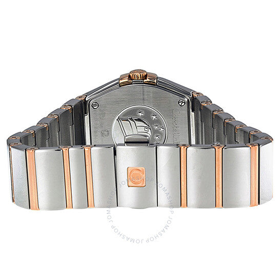 علبة من الفولاذ المقاوم للصدأ مع سوار من الفولاذ المقاوم للصدأ بقضبان من الذهب الوردي عيار 18 قيراطًا. إطار ثابت من الذهب الوردي عيار 18 قيراطًا. ميناء فضي مع عقارب مضيئة بلون الذهب الوردي وعلامات ساعات. نوع الميناء: تناظري. عقارب وعلامات مضيئة. حركة كوارتز أوميغا عيار 1376. زجاج ياقوت مقاوم للخدش. تاج قابل للسحب/الدفع. غطاء خلفي صلب. شكل دائري. حجم العلبة: 27 مم. سمكها: 9 مم. عرض السوار: 15 مم. مشبك قابل للطي بزر ضغط. مقاومة للماء حتى عمق 100 متر / 330 قدمًا. الوظائف: الساعات، الدقائق. سلسلة كونستليشن. تصميم ساعة فاخرة. علامة الساعة: صناعة سويسرية. ساعة أوميغا كونستليشن نسائية بمينا فضي 123.20.27.60.02.003.