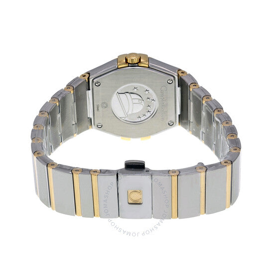 علبة من الفولاذ المقاوم للصدأ مع سوار من الفولاذ المقاوم للصدأ بقضبان من الذهب عيار 18 قيراطًا. إطار ثابت من الذهب عيار 18 قيراطًا. ميناء فضي مع عقارب ومؤشرات ساعات ذهبية اللون. نوع الميناء: تناظري. عقارب ومؤشرات مضيئة. حركة كوارتز أوميغا عيار 1376 مع احتياطي طاقة يصل إلى 48 شهرًا. زجاج من الياقوت المقاوم للخدش. تاج قابل للسحب/الدفع. غطاء خلفي صلب. شكل دائري. حجم العلبة: 27 مم. سمكها: 9 مم. عرض السوار: 17 مم. مشبك قابل للطي بزر ضغط. مقاومة للماء حتى عمق 100 متر / 330 قدمًا. الوظائف: الساعات، الدقائق. تصميم ساعة فاخرة. علامة الساعة: صناعة سويسرية. ساعة أوميغا كونستليشن نسائية بمينا فضية وصفراء، رقمها 12320276002004.