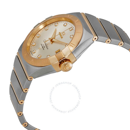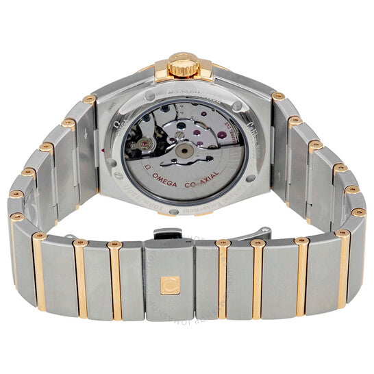 علبة من الفولاذ المقاوم للصدأ فضية اللون، مع سوار من الفولاذ المقاوم للصدأ ثنائي اللون (فضي وذهبي وردي) مع قضبان من الذهب الأصفر عيار 18 قيراطًا. إطار ثابت من الذهب الأصفر عيار 18 قيراطًا بأرقام رومانية. ميناء فضي اللون مع عقارب ذهبية اللون على شكل دوفين وعلامات ساعات من الماس. علامات دقائق حول الحافة الخارجية. نوع الميناء: تناظري. عقارب مضيئة. عرض التاريخ عند موضع الساعة 3. حركة أوميجا كاليبر 8500 أوتوماتيكية، تحتوي على 39 جوهرة، مكونة من 202 قطعة، تنبض بمعدل 25200 ذبذبة في الساعة، ولديها احتياطي طاقة لمدة 60 ساعة تقريبًا. زجاج من الياقوت المقاوم للخدش. تاج قابل للسحب/الدفع. غطاء خلفي شفاف. شكل دائري، حجم العلبة: 38 مم. عرض السوار: 25 مم. قابلة للطي مع مشبك بزر ضغط. مقاومة للماء حتى عمق 100 متر / 330 قدمًا. الوظائف: التاريخ، الساعات، الدقائق، الثواني، ميزان محوري، كرونومتر. سلسلة كونستليشن. تصميم ساعة فاخر. علامة الساعة: صناعة سويسرية. ساعة أوميغا كونستليشن للرجال، مينا فضي مرصع بالألماس، 123.20.38.21.52.002.