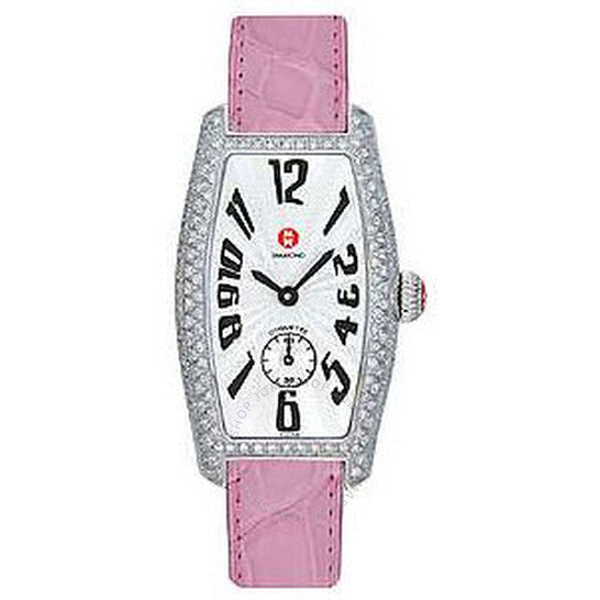 علبة من الفولاذ المقاوم للصدأ على شكل وسادة. سوار من جلد التمساح وردي فاتح. ميناء أبيض مزخرف بنقشة غيوشيه مع مينا ثوانٍ صغيرة عند موضع الساعة السادسة. إطار مرصع بـ 163 ماسة (حوالي قيراط واحد). كريستال ياقوت مقاوم للخدش. حركة كوارتز. مقاومة للماء حتى عمق 30 مترًا (100 قدم). ساعة ميشيل كوكيت النسائية الوردية الفاتحة مرصعة بالألماس ومرصعة بالألماس MWW08B000057 / 08B000057