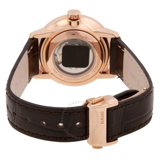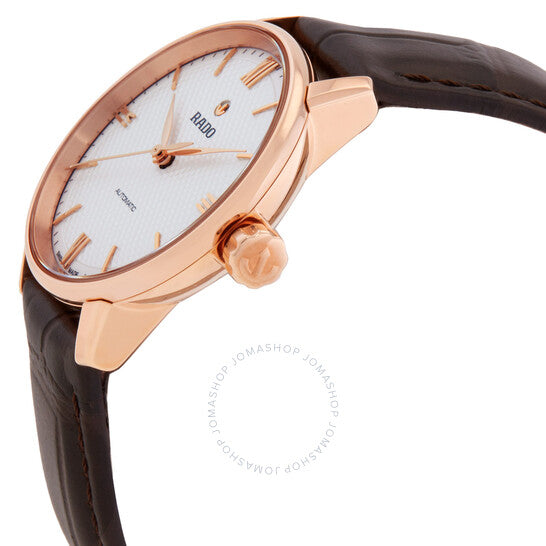 علبة من الفولاذ المقاوم للصدأ مطلية بالذهب الوردي بتقنية PVD مع حزام جلدي. إطار ثابت من الفولاذ المقاوم للصدأ مطلي بالذهب الوردي بتقنية PVD. ميناء أبيض بعقارب بلون الذهب الوردي وعلامات ساعات بأرقام رومانية. علامات دقائق حول الحافة الخارجية. نوع الميناء: تناظري. عرض التاريخ عند موضع الساعة 3. حركة أوتوماتيكية مع احتياطي طاقة لمدة 48 ساعة. زجاج من الياقوت المقاوم للخدش. تاج قابل للسحب/الدفع. غطاء خلفي شفاف. شكل العلبة دائري، مقاسها: 31.8 مم، سمكها: 9.7 مم. مشبك قابل للطي. مقاومة للماء حتى عمق 50 مترًا / 165 قدمًا. الوظائف: التاريخ، الساعة، الدقائق، الثواني. سلسلة كوبول. تصميم كاجوال. علامة الساعة: صناعة سويسرية. ساعة رادو كوبول أوتوماتيكية نسائية بمينا بيضاء، R22865065.