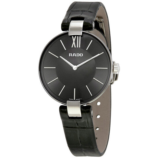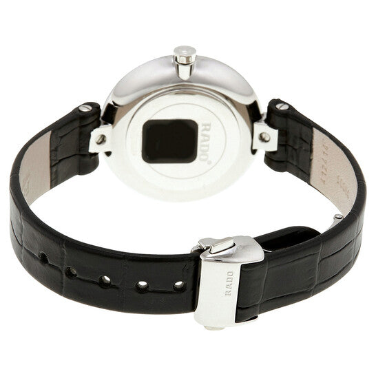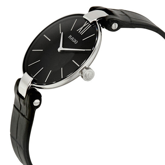 علبة من الفولاذ المقاوم للصدأ مع سوار جلدي أسود. إطار ثابت من الفولاذ المقاوم للصدأ. ميناء أسود بعقارب فضية اللون وعلامات ساعات. يظهر رقم روماني عند موضع الساعة ١٢. نوع الميناء: تناظري. حركة كوارتز. زجاج ياقوت مقاوم للخدش. تاج قابل للسحب/الدفع. غطاء خلفي صلب. حجم العلبة: ٣٢ مم. سُمكها: ٨ مم. شكلها دائري. عرض السوار: ١٣ مم. طول السوار: ٧ بوصات. مشبك قابل للطي بزر ضغط. مقاومة للماء حتى عمق ٥٠ مترًا / ١٦٥ قدمًا. الوظائف: الساعات، الدقائق. طراز ساعة رسمية. علامة الساعة: صناعة سويسرية. ساعة رادو كوبول نسائية بمينا سوداء، R22850155.