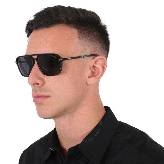 نظارات شمسية توم فورد. سلسلة كروسبي. رقم السلسلة: FT0910. رمز اللون: 01A. الشكل: طيار. عرض العدسة: 59 مم. جسر العدسة: 16 مم. طول الذراع: 140 مم. حماية 100% من الأشعة فوق البنفسجية. مادة الإطار: بلاستيك. لون الإطار: أسود لامع. نوع العدسات: دخاني. نمط الحافة: حافة كاملة. رمز UPC/EAN: 889214292810. نظارات شمسية توم فورد كروسبي سموك بايلوت للرجال، FT0910 01A 59.