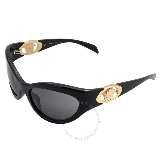 نظارات شمسية من فيرساتشي. رقم السلسلة: VE4485. رمز اللون: GB1/87. الشكل: عين القطة. عرض العدسة: 59 مم. جسر العدسة: 19 مم. طول الذراع: 125 مم. حماية 100% من الأشعة فوق البنفسجية. غير مستقطب. مادة الإطار: بلاستيك. لون الإطار: أسود. نوع العدسات: رمادي داكن. نمط الحافة: حافة كاملة. رمز UPC/EAN: 8056262421772. نظارات شمسية نسائية من فيرساتشي، عين القطة، رمادية داكنة، VE4485 GB1/87، 59.