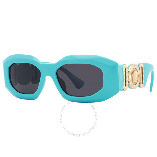 نظارات شمسية من فيرساتشي. رقم السلسلة: VE4425U. رمز اللون: 543987. الشكل: غير منتظم. عرض العدسة: 53 مم. جسر العدسة: 18 مم. طول الذراع: 145 مم. حماية 100% من الأشعة فوق البنفسجية. غير مستقطب. مادة الإطار: نايلون. لون الإطار: أزرق سماوي. نوع العدسات: رمادي داكن. نمط الحافة: حافة كاملة. رمز UPC/EAN: 8056597922913. نظارات شمسية رجالية من فيرساتشي رمادية داكنة غير منتظمة VE4425U 543987 53.