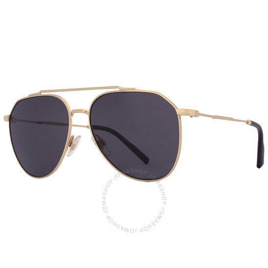نظارات شمسية من دولتشي آند غابانا. رقم السلسلة: DG2296. رمز اللون: 02/87. الشكل: طيار. عرض العدسة: 58 مم. جسر العدسة: 15 مم. طول الذراع: 145 مم. حماية 100% من الأشعة فوق البنفسجية. غير مستقطب. مادة الإطار: فولاذ. لون الإطار: ذهبي. نوع العدسات: رمادي داكن. نمط الحافة: حافة كاملة. رمز UPC/EAN: 8056597843065. نظارات شمسية من دولتشي آند غابانا بايلوت رمادية داكنة للرجال DG2296 02/87 58.