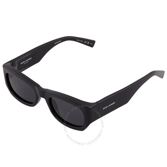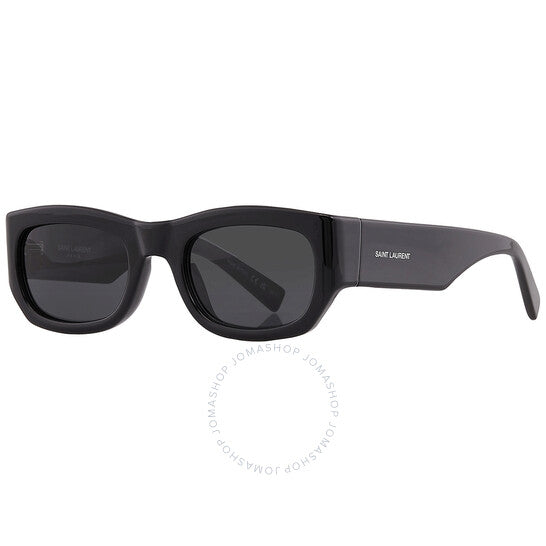 نظارات شمسية من سان لوران. رقم السلسلة: SL 713. رمز اللون: 001. الشكل: مستطيل. عرض العدسة: 53 مم. جسر العدسة: 22 مم. طول الذراع: 145 مم. حماية 100% من الأشعة فوق البنفسجية. غير مستقطب. مادة الإطار: أسيتات. لون الإطار: أسود. نوع العدسات: رمادي داكن. نمط الحافة: حافة كاملة. رمز UPC/EAN: 889652516059. نظارات شمسية نسائية مستطيلة من سان لوران، رمادية داكنة، SL 713 001 53.