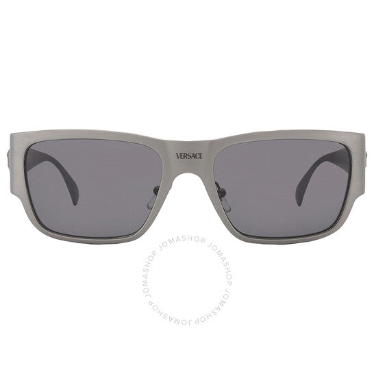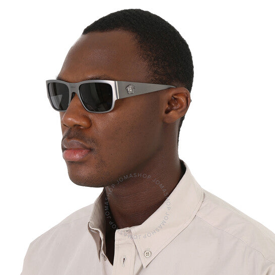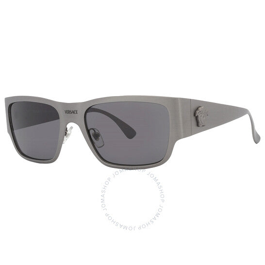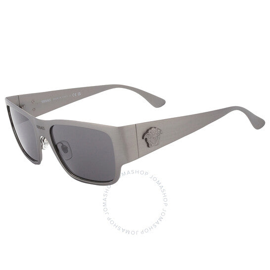 نظارات شمسية من فيرساتشي. رقم السلسلة: VE2262. رمز اللون: 126287. الشكل: مستطيل. عرض العدسة: 56 مم. جسر العدسة: 18 مم. طول الذراع: 140 مم. حماية 100% من الأشعة فوق البنفسجية. غير مستقطبة. مادة الإطار: معدن. لون الإطار: رصاصي. نوع العدسات: رمادي داكن. نمط الحافة: حافة كاملة. رمز UPC/EAN: 8056597921220. نظارات شمسية فيرساتشي رمادية داكنة مستطيلة للرجال VE2262 126287 56.
