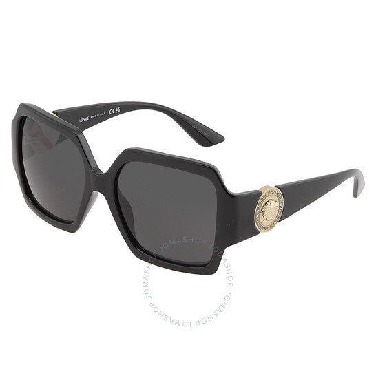 نظارات شمسية من فيرساتشي. رقم السلسلة: VE4453. رمز اللون: GB1/87. الشكل: مربع. عرض العدسة: 56 مم. جسر العدسة: 17 مم. طول الذراع: 135 مم. حماية 100% من الأشعة فوق البنفسجية. مادة الإطار: بلاستيك. لون الإطار: أسود. نوع العدسات: رمادي داكن. نمط الحافة: حافة كاملة. رمز UPC/EAN: 8056597894845. نظارات شمسية نسائية مربعة رمادية داكنة من فيرساتشي VE4453 GB1/87 56.