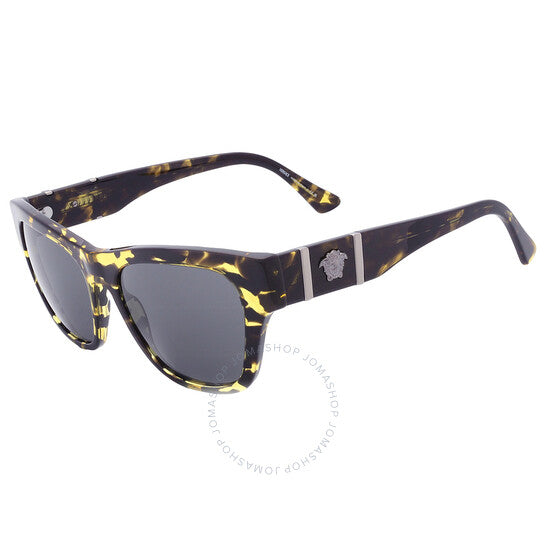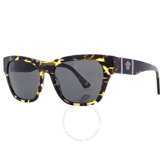 نظارات شمسية من فيرساتشي. رقم السلسلة: VE4457. رمز اللون: 542887. الشكل: مربع. عرض العدسة: 55 مم. جسر العدسة: 18 مم. طول الذراع: 145 مم. حماية 100% من الأشعة فوق البنفسجية. مادة الإطار: أسيتات. لون الإطار: هافانا. نوع العدسات: رمادي داكن. نمط الحافة: حافة كاملة. رمز UPC/EAN: 8056597922197. نظارات شمسية فيرساتشي مربعة رمادية داكنة للرجال، VE4457 542887 55.