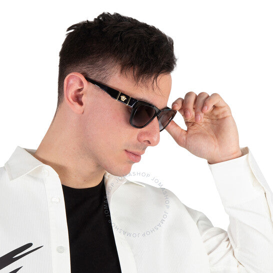 نظارات شمسية من فيرساتشي. رقم السلسلة: VE4457. رمز اللون: GB1/81. الشكل: مربع. عرض العدسة: 55 مم. جسر العدسة: 18 مم. طول الذراع: 145 مم. حماية 100% من الأشعة فوق البنفسجية. غير مستقطب. مادة الإطار: بلاستيك. لون الإطار: أسود. نوع العدسات: رمادي داكن. نمط الحافة: حافة كاملة. رمز UPC/EAN: 8056597935548. نظارات شمسية فيرساتشي رمادية داكنة مربعة للرجال VE4457 GB1/81 55.