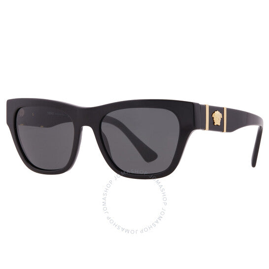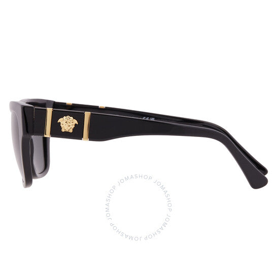 نظارات شمسية من فيرساتشي. رقم السلسلة: VE4457. رمز اللون: GB1/87. الشكل: مربع. عرض العدسة: 55 مم. جسر العدسة: 18 مم. طول الذراع: 145 مم. حماية 100% من الأشعة فوق البنفسجية. غير مستقطب. مادة الإطار: أسيتات. لون الإطار: أسود. نوع العدسات: رمادي داكن. نمط الحافة: حافة كاملة. رمز UPC/EAN: 8056597923989. نظارات شمسية مربعة رمادية داكنة للرجال من فيرساتشي VE4457 GB1/87 55.
