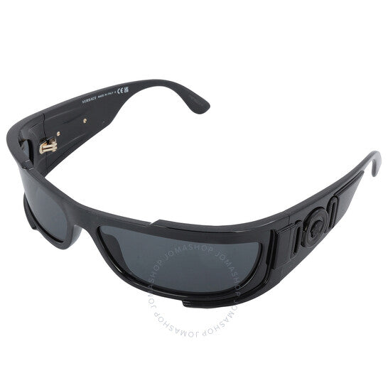 نظارات شمسية من فيرساتشي. رقم السلسلة: VE4446. رمز اللون: GB1/87. الشكل: ملفوف. عرض العدسة: 67 مم. جسر العدسة: 16 مم. طول الذراع: 120 مم. حماية 100% من الأشعة فوق البنفسجية. غير مستقطب. مادة الإطار: نايلون. لون الإطار: أسود. نوع العدسات: رمادي داكن. نمط الحافة: حافة كاملة. رمز UPC/EAN: 8056597849005. نظارات شمسية فيرساتشي رمادية داكنة ملفوفة للرجال VE4446 GB1/87 67.