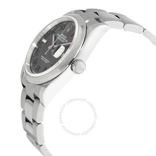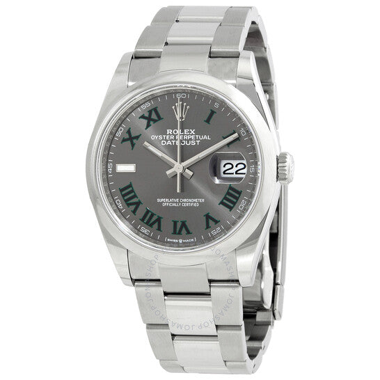 علبة من الفولاذ المقاوم للصدأ مع سوار أويستر من الفولاذ المقاوم للصدأ. إطار ثابت مقبب من الفولاذ المقاوم للصدأ. ميناء رمادي اللون مع عقارب فضية اللون وعلامات ساعات بأرقام رومانية. علامات دقائق بأرقام عربية (بفاصل ٥ دقائق). علامات دقائق حول الحافة الخارجية. نوع الميناء: تناظري. عقارب وعلامة مضيئة. عرض التاريخ عند موضع الساعة ٣. حركة رولكس أوتوماتيكية من عيار ٣٢٣٥، مستوحاة من رولكس ٣٠٣٥، تحتوي على ٣١ جوهرة، تنبض بتردد ٢٨٨٠٠ ذبذبة في الساعة، ولديها احتياطي طاقة يقارب ٧٠ ساعة. كريستال ياقوت مقاوم للخدش. تاج لولبي. غطاء خلفي لولبي. شكل دائري. حجم العلبة: ٣٦ مم. مشبك قابل للطي مع وصلة تمديد مريحة بقطر ٥ مم. مقاومة للماء حتى عمق ١٠٠ متر / ٣٣٠ قدمًا. الوظائف: التاريخ، الساعة، الدقيقة، الثانية، الكرونومتر. سلسلة ديت جست ٣٦. تصميم ساعة فاخرة. علامة الساعة: صناعة سويسرية. ساعة رولكس ديت جست 36 أوتوماتيكية بمينا رمادي للسيدات 126200GYRO.