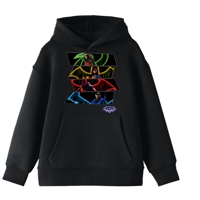 - مرخص رسميًا - قميص رياضي بغطاء رأس مطبوع عليه رسوميات سوداء من مجموعة شخصيات DC Gotham Knights للشباب مرخص رسميًا وأصلي بنسبة 100%، مما يجعله الهدية المثالية للمعجبين!