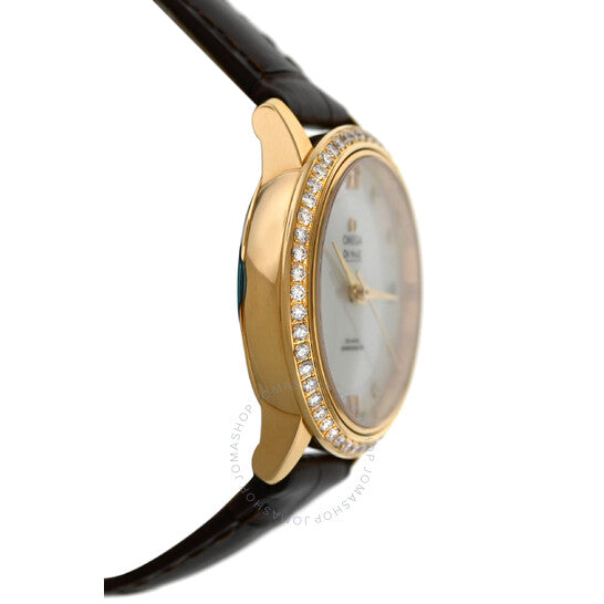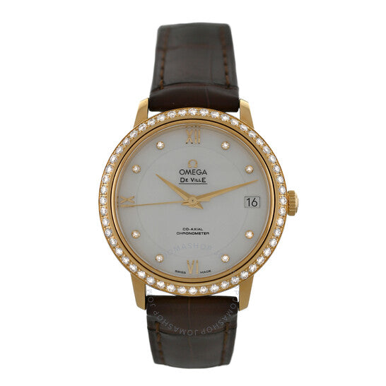 علبة من الذهب الأصفر عيار 18 قيراطًا مع سوار من الجلد البني. إطار مرصع بالألماس. ميناء من عرق اللؤلؤ الأبيض مع عقارب ذهبية اللون وأرقام رومانية وعلامات ساعات من الألماس. نوع الميناء: تناظري. عرض التاريخ عند موضع الساعة 3. حركة أوميغا كاليبر 2500 أوتوماتيكية مع احتياطي طاقة لمدة 48 ساعة. زجاج ياقوت مقاوم للخدش. حجم العلبة: 32.7 مم. شكل العلبة دائري. عرض السوار: 16 مم. مقاومة للماء حتى عمق 30 مترًا / 100 قدم. الوظائف: التاريخ، الساعات، الدقائق، الثواني، ميزان محوري، كرونومتر. تصميم ساعة فاخرة. علامة الساعة: صناعة سويسرية. ساعة أوميغا دي فيل بريستيج أوتوماتيكية نسائية 424.58.33.20.55.002.