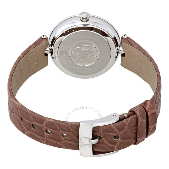 علبة من الفولاذ المقاوم للصدأ مع سوار جلدي بني. إطار ثابت من الفولاذ المقاوم للصدأ مرصع بالألماس. ميناء فضي بعقارب فضية اللون وعلامات ساعات من الألماس. أرقام رومانية تُشير إلى مواقع الساعات 3 و6 و9 و12. نوع الميناء: تناظري. حركة كوارتز أوميغا عيار 4061. زجاج ياقوت مقاوم للخدش. تاج قابل للسحب/الدفع. غطاء خلفي صلب. شكل دائري. حجم العلبة: 27.4 مم. عرض السوار: 12 مم. مشبك تانغ. مقاومة للماء حتى عمق 30 مترًا / 100 قدم. الوظائف: الساعات والدقائق. تصميم ساعة فاخرة. علامة الساعة: صناعة سويسرية. ساعة أوميغا دي فيل بريستيج نسائية مرصعة بالألماس 424.18.27.60.52.001.