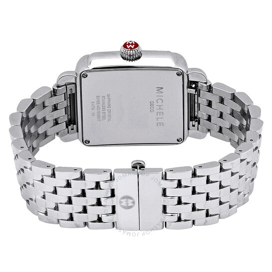 علبة من الفولاذ المقاوم للصدأ مع سوار من الفولاذ المقاوم للصدأ. إطار ثابت من الفولاذ المقاوم للصدأ. ميناء فضي مزين بنقشة أشعة الشمس (مرصع بالألماس) مع عقارب فضية مضيئة وعلامات ساعات بأرقام رومانية. نوع الميناء: تناظري. عقارب مضيئة. عرض التاريخ عند موضع الساعة السادسة. آلية حركة كوارتز. زجاج ياقوت مقاوم للخدش. تاج قابل للسحب/الدفع. غطاء خلفي صلب. أبعاد العلبة: 33 مم × 35 مم. سمكها: 11 مم. شكلها مستطيل. عرض السوار: 18 مم. مشبك قابل للطي. مقاومة للماء حتى عمق 50 مترًا / 165 قدمًا. الوظائف: التاريخ، الساعة، الدقائق، الثواني. تصميم ساعة فاخرة. علامة الساعة: صناعة سويسرية. ساعة ميشيل ديكو ماديسون فضية مرصعة بالألماس للسيدات MWW06T000141.