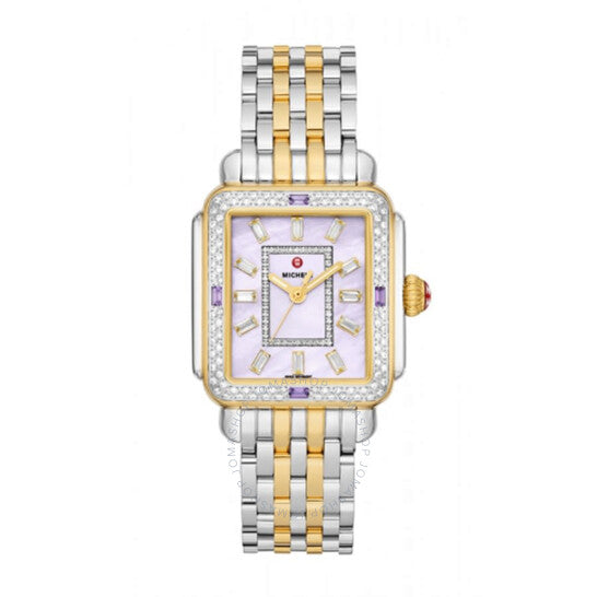 علبة من الفولاذ المقاوم للصدأ فضية اللون مع سوار من الفولاذ المقاوم للصدأ ثنائي اللون (فضي وذهبي أصفر). إطار ثابت من الذهب الأصفر مرصع بالألماس. ميناء بنفسجي مع عقارب ذهبية اللون وعلامات ساعات من الألماس. نوع الميناء: تناظري. حركة كوارتز. هيكل مستطيل الشكل، مقاسه 35 مم. مشبك قابل للطي مع مفتاح أمان. مقاومة للماء حتى عمق 50 مترًا / 165 قدمًا. الوظائف: الساعات، الدقائق، الثواني. سلسلة ديكو. تصميم ساعة فاخرة. علامة الساعة: صناعة سويسرية. ساعة ميشيل ديكو كوارتز نسائية بمينا بنفسجي مرصعة بالألماس MWW06T000263.