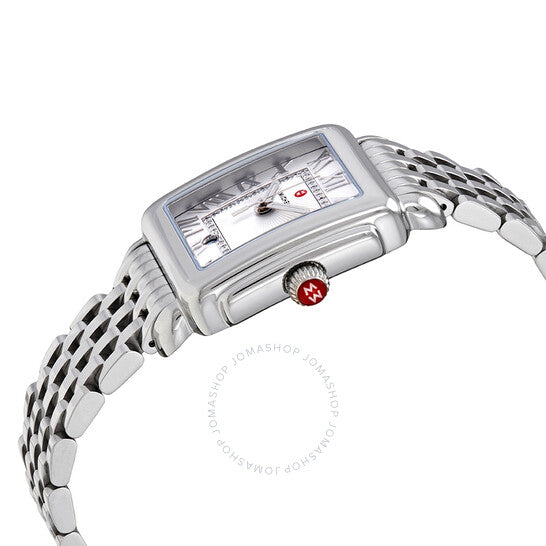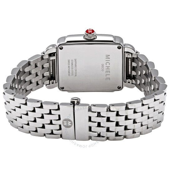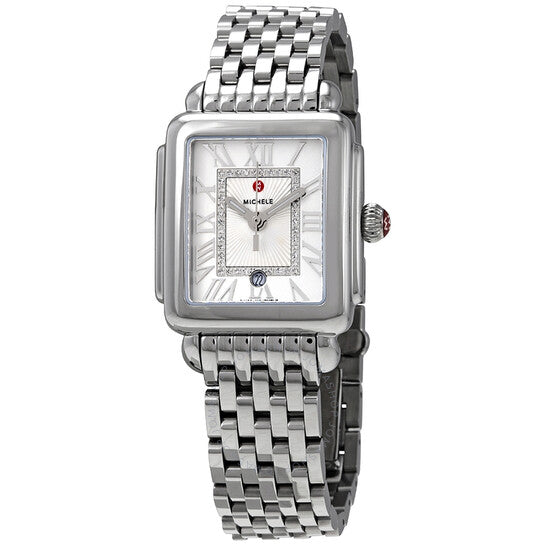 علبة من الفولاذ المقاوم للصدأ مع سوار من الفولاذ المقاوم للصدأ. إطار ثابت من الفولاذ المقاوم للصدأ. ميناء أبيض مزين بنقشة أشعة الشمس (مرصع بالألماس) مع عقارب فضية مضيئة وعلامات ساعات بأرقام رومانية. نوع الميناء: تناظري. عقارب مضيئة. عرض التاريخ عند موضع الساعة السادسة. حركة كوارتز. زجاج ياقوت مقاوم للخدش. غطاء خلفي صلب. شكل العلبة مستطيل. أبعاد العلبة: ٢٩ مم × ٣١ مم. سُمك العلبة: ٨.٥ مم. عرض السوار: ١٦ مم. مشبك قابل للطي بزر ضغط. مقاومة للماء حتى عمق ٥٠ مترًا / ١٦٥ قدمًا. الوظائف: التاريخ، الساعة، الدقيقة، الثانية. معلومات إضافية: مرصع بـ ٤٠ ماسة (٠.١٠ قيراط). طراز ساعة فاخرة. علامة الساعة: صناعة سويسرية. ساعة ميشيل ديكو كوارتز نسائية بمينا بيضاء MWW06G000012.