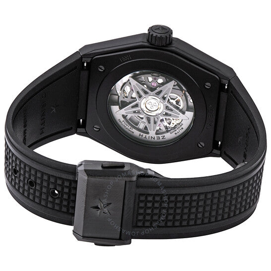 علبة سيراميك سوداء مع سوار مطاطي أسود. إطار ثابت من السيراميك الأسود. ميناء أسود هيكلي بعقارب سوداء مضيئة وعلامات ساعات. علامات دقائق حول الحافة الخارجية. نوع الميناء: تناظري. عرض التاريخ عند موضع الساعة السادسة. حركة أوتوماتيكية من زينيث، عيار إيليت 670 SK، مبنية على زينيث إيليت 670، تحتوي على 27 جوهرة، مكونة من 187 جزءًا، تنبض بمعدل 28800 ذبذبة في الساعة، ولديها احتياطي طاقة يصل إلى حوالي 50 ساعة. زجاج ياقوت مقاوم للخدش. غطاء خلفي شفاف. شكل دائري. حجم العلبة: 41 مم. سمكها: 9.45 مم. مشبك قابل للطي مرتين. مقاومة للماء حتى عمق 100 متر / 330 قدمًا. الوظائف: التاريخ، الساعة، الدقيقة، الثانية. سلسلة ديفاي كلاسيك. تصميم ساعة فاخرة. علامة الساعة: صناعة سويسرية. ساعة زينيث ديفاي كلاسيك أوتوماتيكية للرجال 49.9000.670/77.R782.