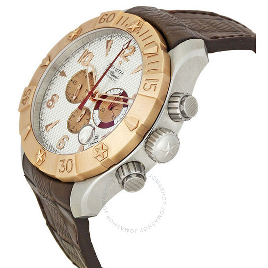 علبة من الذهب الأصفر عيار ١٨ قيراطًا مع سوار من الجلد البني. إطار دوار أحادي الاتجاه من الذهب الأصفر عيار ١٨ قيراطًا. ميناء أبيض مزخرف بعقارب ذهبية اللون، وأرقام عربية وعلامات ساعات متناوبة. علامات دقائق حول الحافة الخارجية. نوع الميناء: تناظري. عرض التاريخ بين موضعي الساعة ٤ و٥، جلد بني. كرونوغراف - ثلاثة أقراص فرعية تعرض: ٦٠ ثانية، ٣٠ دقيقة، وعُشر ثانية. حركة أوتوماتيكية من زينيث كاليبر إل بريميرو ٤٠٠٠ إس سي، تحتوي على ٣١ جوهرة، تنبض بمعدل ٣٦٠٠٠ ذبذبة في الساعة، وتحتفظ باحتياطي طاقة يقارب ٥٥ ساعة. زجاج ياقوت مقاوم للخدش ومضاد للانعكاس. تاج لولبي. غطاء خلفي لولبي. شكل دائري. حجم العلبة: ٤٦.٥ مم. مشبك تانغ. مقاومة للماء حتى عمق ٣٠٠ متر / ١٠٠٠ قدم. الوظائف: كرونوغراف، تاريخ، ساعات، دقائق، ثوانٍ. تصميم فاخر. علامة الساعة: صناعة سويسرية. إصدارات الساعة: 86.0526.4000.01.C649، 86.0526.4000-01.C649، 8605264000 01C649، 860526400001C649. ساعة زينيث ديفاي كلاسيك كرونوغراف آيرو 86.0526.4000/01-C649.