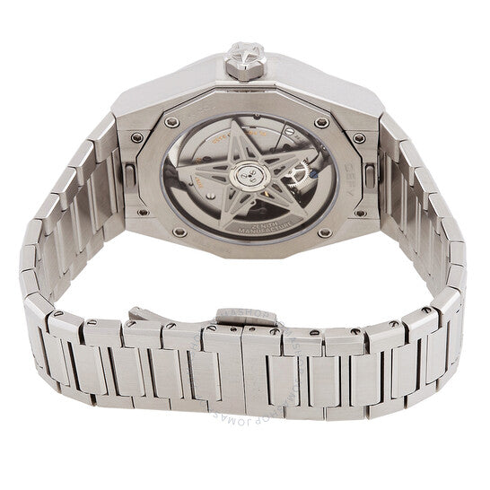 علبة وسوار من الفولاذ المقاوم للصدأ فضي اللون. إطار ثابت من الفولاذ المقاوم للصدأ فضي اللون. ميناء أزرق ثلجي مع عقارب وعلامات ساعات فضية اللون. مقياس دقائق حول الحافة الداخلية. نوع الميناء: تناظري. عقارب وعلامات مضيئة. عرض التاريخ عند موضع الساعة السادسة. موانئ فرعية للثواني الصغيرة. حركة أوتوماتيكية من نوع Zenith Calibre El Primero 3620 مع احتياطي طاقة لمدة 60 ساعة. زجاج من الياقوت المقاوم للخدش. تاج لولبي. غطاء خلفي شفاف. هيكل مثمن الشكل، مقاسه 41 مم. مشبك قابل للطي. مقاومة للماء حتى عمق 100 متر / 330 قدم. الوظائف: الساعات، الدقائق، الثواني، التاريخ، عُشر الثانية. سلسلة Defy Skyline. تصميم ساعة فاخرة. علامة الساعة: صناعة سويسرية. ساعة Zenith Defy Skyline أوتوماتيكية للرجال 03.9300.3620/15.I001.