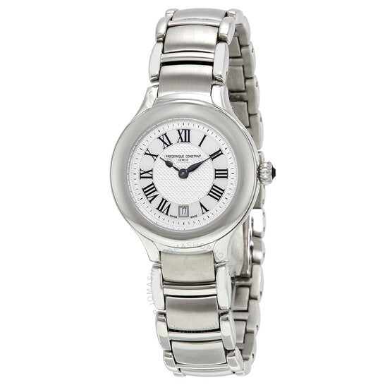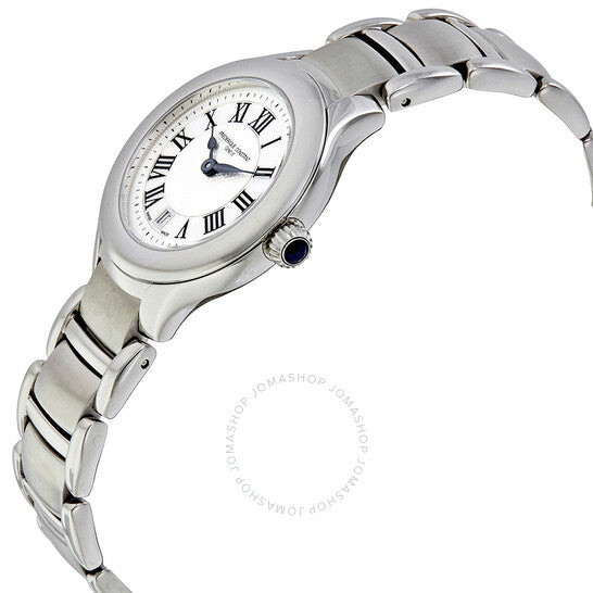 علبة من الفولاذ المقاوم للصدأ مع سوار من الفولاذ المقاوم للصدأ. إطار ثابت من الفولاذ المقاوم للصدأ. ميناء فضي مزخرف بنقشة غيوشيه مع عقارب سوداء وعلامات ساعات رومانية. علامات دقائق حول الحافة الخارجية. نوع الميناء: تناظري. عرض التاريخ عند موضع الساعة السادسة. حركة كوارتز من عيار فريدريك كونستانت FC-220. زجاج ياقوت مقاوم للخدش. تاج قابل للسحب/الدفع. غطاء خلفي صلب. حجم العلبة: 31 مم. سمكها: 7.7 مم. شكلها دائري. عرض السوار: 16 مم. مشبك مخفي. مقاومة للماء حتى عمق 30 مترًا / 100 قدم. الوظائف: التاريخ، الساعة، الدقائق. طراز ساعة رسمية. علامة الساعة: صناعة سويسرية. إصدارات متنوعة: FC 220M2ER6B، FC.220M2ER6B، FC220M2ER6B. ساعة فريدريك كونستانت ديلايت النسائية بمينا فضي 220M2ER6B.