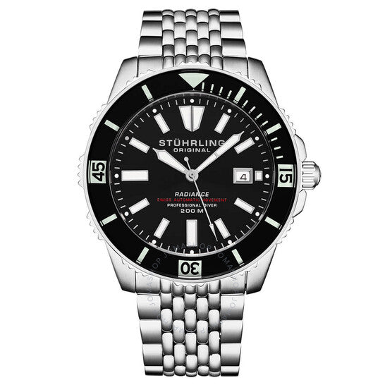 علبة وسوار من الفولاذ المقاوم للصدأ فضي اللون. إطار دوار أحادي الاتجاه من الفولاذ المقاوم للصدأ أسود اللون. ميناء أسود بعقارب وعلامات ساعات فضية اللون. علامات دقائق حول الحافة الخارجية. نوع الميناء: تناظري. عقارب وعلامات مضيئة. عرض التاريخ عند موضع الساعة 3. حركة أوتوماتيكية. زجاج معدني مقاوم للخدش. تاج لولبي. غطاء خلفي صلب. شكل العلبة دائري، مقاس العلبة: 43 مم، سمكها: 14 مم. عرض السوار: 22 مم، طوله: 7.5 بوصة. مشبك قابل للطي مع مفتاح أمان. مقاومة للماء حتى عمق 200 متر / 660 قدمًا. الوظائف: التاريخ، الساعة، الدقائق، الثواني. سلسلة ديبث ماستر. طراز ساعة الغوص. ساعة ستوهرلينغ الأصلية ديبث ماستر أوتوماتيكية للرجال بمينا أسود M16935.