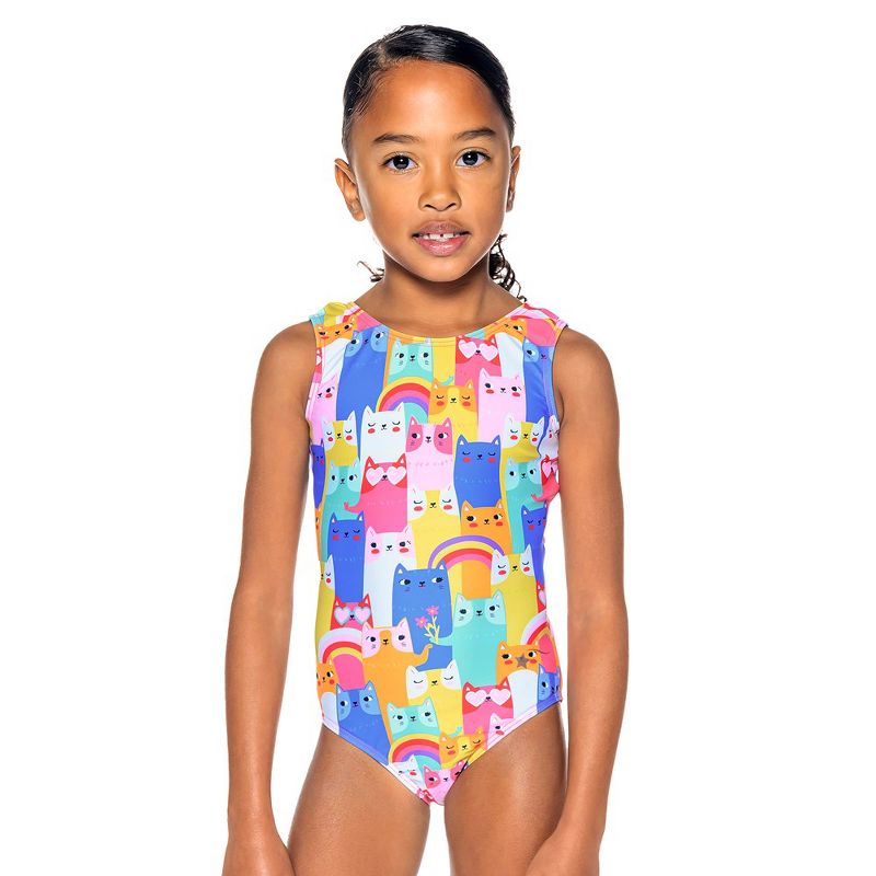 تُضفي ألوان الوردي والأزرق والأبيض والأزرق المخضر لمسةً من القطط وأقواس قزح على هذا الثوب الرياضي الجذاب للفتيات بطابع القطط. يتميز ثوب كاتلانديا بتصميم مفتوح من الخلف يوفر تهوية ممتازة وسهولة حركة فائقة. تألقي بإطلالة ساحرة مع هذا التصميم بطبعة القطط، المصنوع من قماش عالي الجودة وخفيف الوزن ومتين. يأتي مع ربطة شعر مطابقة.
