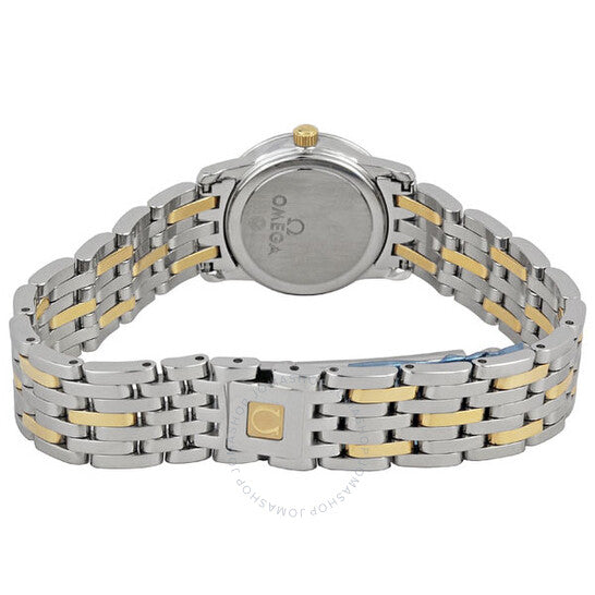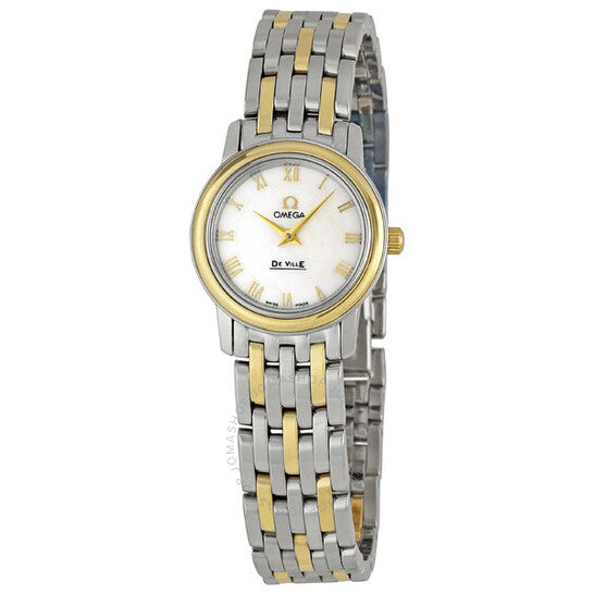 علبة من الفولاذ المقاوم للصدأ مع سوار من الذهب الأصفر عيار 18 قيراطًا. إطار ثابت من الذهب الأصفر عيار 18 قيراطًا. ميناء من عرق اللؤلؤ مع عقارب ذهبية اللون وعلامات ساعات بأرقام رومانية ذهبية اللون. نوع الميناء: تناظري. عقارب وعلامات مضيئة. حركة كوارتز. زجاج ياقوت مقاوم للخدش. تاج ذهبي اللون للدفع والسحب. غطاء خلفي صلب. قطر العلبة: 22 مم. سُمكها: 5.7 مم. شكلها دائري. مشبك قابل للطي. مقاومة للماء حتى عمق 30 مترًا / 100 قدم. الوظائف: الساعات، الدقائق. طراز ساعة رسمية. علامة الساعة: صناعة سويسرية. ساعة أوميغا ديفيل بريستيج نسائية 4370.71.