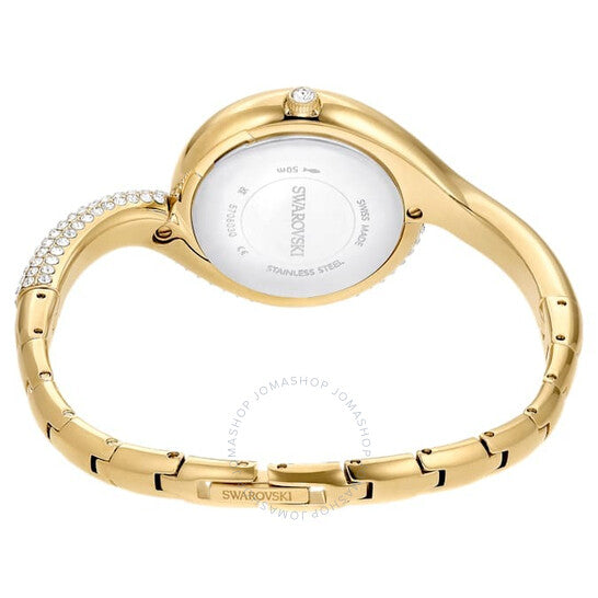 علبة وسوار من الفولاذ المقاوم للصدأ ذهبي اللون. إطار ثابت ذهبي اللون مرصع بالكريستال. ميناء فضي بعقارب ذهبية اللون وعلامات ساعات من الكريستال. شعار بجعة عند موضع الساعة ١٢. نوع الميناء: تناظري. حركة كوارتز. كريستال معدني مقاوم للخدش. تاج قابل للسحب/الدفع. غطاء خلفي صلب. شكل دائري، مقاس العلبة: ٢٩ مم. مشبك مجوهرات. مقاومة للماء حتى عمق ٥٠ مترًا / ١٦٥ قدمًا. الوظائف: الساعات، الدقائق. سلسلة ديكسترا غير المتماثلة. طراز ساعة رسمية. علامة الساعة: صناعة سويسرية. ساعة سواروفسكي ديكسترا غير المتماثلة كوارتز فضية للنساء، رقم ٥٧٠٨٠٣٠.