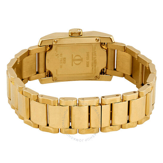 علبة مصقولة من الذهب الأصفر عيار ١٨ قيراطًا مع سوار من الذهب الأصفر عيار ١٨ قيراطًا. إطار من الذهب الأصفر عيار ١٨ قيراطًا مرصع بـ ١٤ ماسة. ميناء من عرق اللؤلؤ مع عقارب ومؤشرات ساعات من الذهب الأصفر. أرقام عربية تُشير إلى الساعات ٣ و٩ و١٢. يُعرض التاريخ عند الساعة ٦. حركة كوارتز. كريستال ياقوت مقاوم للخدش. تاج من الذهب الأصفر عيار ١٨ قيراطًا مرصع بماسة واحدة. غطاء خلفي صلب. أبعاد العلبة: ٣٣ مم × ٢٢ مم. سُمك العلبة: ٨.٢ مم. مشبك قابل للطي ثلاث مرات من الذهب الأصفر عيار ١٨ قيراطًا. مقاومة للماء حتى عمق ٣٠ مترًا / ١٠٠ قدم. الوظائف: الساعات، الدقائق، التاريخ. معلومات إضافية: وزن الذهب ٨١ غرامًا، ٠.٠٣٨ قيراط. ساعة بوم آند ميرسييه ديامانت نسائية ٨٦٩٨. إصدارات المنتج: MOA٨٦٩٨، M٠A٠٨٦٩٨، ٨٦٩٨، ٠٨٦٩٨