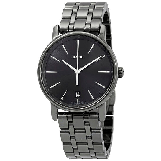 علبة من السيراميك عالي التقنية من البلازما مع سوار من السيراميك عالي التقنية. إطار ثابت من السيراميك. ميناء أسود بعقارب فضية اللون وعلامات ساعات. نوع الميناء: تناظري. عرض التاريخ عند موضع الساعة السادسة. حركة كوارتز. زجاج ياقوتي مقاوم للخدش. حجم العلبة: 33 مم. شكلها دائري. مقاومة للماء حتى عمق 50 مترًا / 165 قدمًا. الوظائف: التاريخ، الساعة، الدقائق، الثانية. طراز ساعة رسمية. علامة الساعة: صناعة سويسرية. ساعة رادو دياماستَر نسائية من السيراميك بمينا أسود، R14064177.