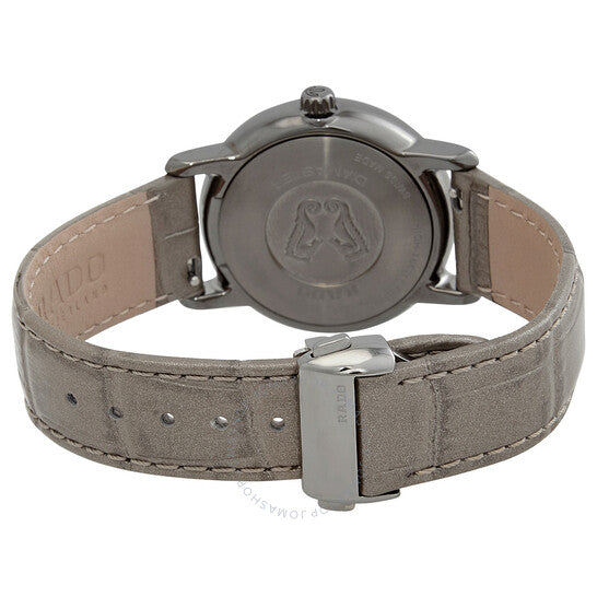 علبة من السيراميك البلازمي (عالي التقنية) مع سوار جلدي رمادي. إطار ثابت من السيراميك البلازمي (عالي التقنية). ميناء بني (مرصع بالألماس) مع عقارب فضية اللون وعلامات ساعات. نوع الميناء: تناظري. عرض التاريخ عند موضع الساعة السادسة. آلية حركة كوارتز. زجاج ياقوت مقاوم للخدش. تاج قابل للسحب/الدفع. غطاء خلفي صلب. شكل دائري. حجم العلبة: 33 مم. سمكها: 7.8 مم. مشبك تانغ. مقاومة للماء حتى عمق 50 مترًا / 165 قدمًا. الوظائف: التاريخ، الساعة، الدقيقة، الثانية. معلومات إضافية: 24 ماسة، وزن 0.069 قيراط. سلسلة دياماسترز دايموندز. طراز ساعة رسمية. علامة الساعة: صناعة سويسرية. ساعة رادو دياماسترز دايموندز كوارتز نسائية بمينا بني، رقم الموديل R14064735.