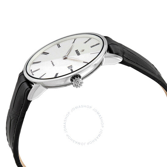 علبة من الفولاذ المقاوم للصدأ مع سوار جلدي أسود. إطار ثابت من الفولاذ المقاوم للصدأ. ميناء أبيض بعقارب فضية اللون وعلامات ساعات بأرقام رومانية. نوع الميناء: تناظري. عرض التاريخ عند موضع الساعة 3. حركة أوتوماتيكية باحتياطي طاقة لمدة 64 ساعة. زجاج ياقوت مقاوم للخدش. غطاء خلفي شفاف. شكل دائري. حجم العلبة: 40.7 مم. سمكها: 8.3 مم. مشبك قابل للطي. مقاومة للماء حتى عمق 50 مترًا / 165 قدمًا. الوظائف: التاريخ، الساعة، الدقائق. سلسلة دياماست ثينلاين. طراز ساعة رسمية. علامة الساعة: صناعة سويسرية. ساعة رادو دياماست ثينلاين أوتوماتيكية للرجال بمينا أبيض، R14067036.