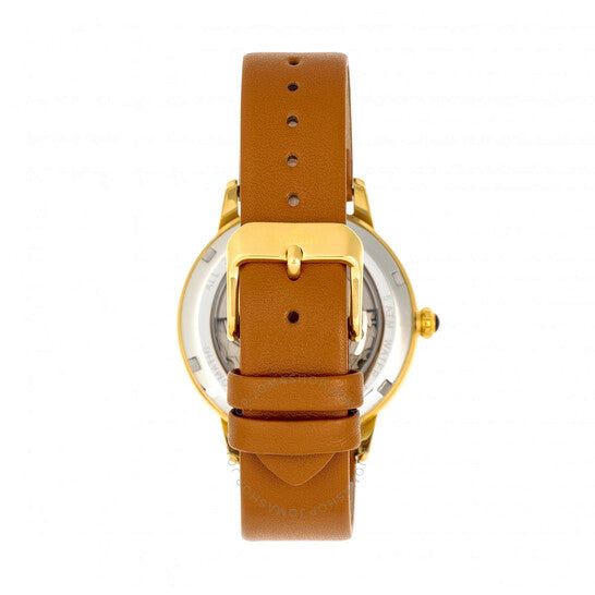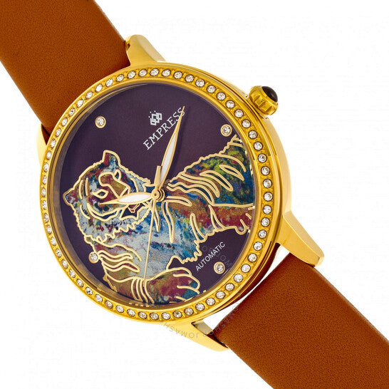 علبة من الفولاذ المقاوم للصدأ بلون ذهبي مع سوار من جلد الجمل. إطار ذهبي ثابت مرصع بالكريستال. ميناء من عرق اللؤلؤ (نقشة النمر) بعقارب ذهبية على شكل أوراق شجر وعلامات ساعات من الكريستال. كريستالات مرصعة عند مواضع الساعة 3 و6 و9 و12. نوع الميناء: تناظري. عقارب مضيئة. حركة أوتوماتيكية عيار SII NH35A، تحتوي على 24 جوهرة، تنبض بمعدل 21600 ذبذبة في الساعة، ولديها احتياطي طاقة لمدة 41 ساعة تقريبًا. كريستال معدني مقاوم للخدش. تاج قابل للسحب/الدفع. غطاء خلفي شفاف. شكل دائري. حجم العلبة: 38 مم. سمك العلبة: 12 مم. عرض السوار: 18 مم. مشبك تانغ. مقاومة للماء حتى عمق 50 مترًا / 165 قدمًا. الوظائف: الساعات، الدقائق، الثواني. معلومات إضافية: نقشة نقشة النمر على الميناء. سلسلة ديانا. طراز ساعة رسمية. ملصق الساعة: Japan Movt. تنويعات المنتج: EMPEM3004. ساعة Empress Diana Tiger أوتوماتيكية كريستال للسيدات EMPEM3004.