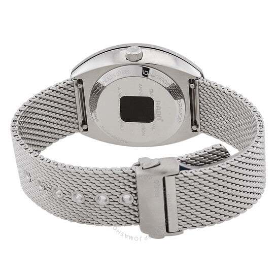 علبة وسوار من الفولاذ المقاوم للصدأ فضي اللون. إطار ثابت من الفولاذ المقاوم للصدأ فضي اللون. ميناء فضي اللون مع عقارب ومؤشرات ساعات فضية اللون. نوع الميناء: تناظري. عقارب ومؤشرات مضيئة. عرض التاريخ عند موضع الساعة السادسة. حركة أوتوماتيكية باحتياطي طاقة يصل إلى 80 ساعة. زجاج ياقوتي مقاوم للخدش. غطاء خلفي صلب. شكل العلبة دائري، مقاسها: 38 مم. مشبك قابل للطي مع مفتاح أمان. مقاومة للماء حتى عمق 100 متر / 330 قدمًا. الوظائف: التاريخ، الساعة، الدقائق، الثانية. معلومات إضافية: إصدار الذكرى السنوية الستين. سلسلة دياستار. تصميم ساعة فاخرة. علامة الساعة: صناعة سويسرية. ساعة رادو دياستار أوتوماتيكية للرجال بمينا فضي، R12163118.